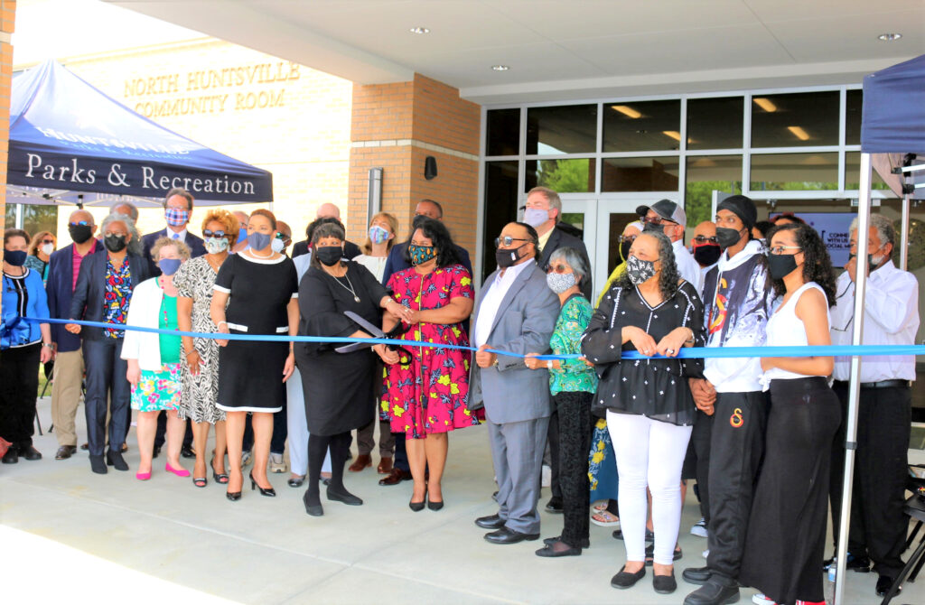 RIBBON CUTTING – – The City of Huntsville debuted its latest public amenity on Sparkman Drive to benefit residents living in North Huntsville. Mayor Tommy Battle and District 1 Council Member Devyn Keith hosted a ribbon-cutting on April 7 to open the Dr. Robert Shurney Legacy Center, an eleven-acre campus featuring the new North Huntsville Library and recreation facilities. The $11 million project was funded by the City of Huntsville and donations from private and government partners.