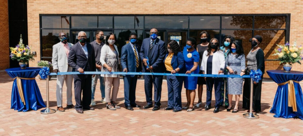 On April 6, 2021, during National Library Week, the Eva B. Dykes Library celebrated its “refresh” with a ribbon-cutting ceremony. In attendance were members of the Oakwood University Administration, led by the President, Dr. Leslie N. Pollard, and its vice presidents: Dr. Colwick Wilson, Ms. Sabrina Cotton, Dr. Prudence Pollard, Dr. Karen Benn Marshall, and Dean David Knight; USM President Jordain Thompson, and the library staff. Dr. Carlton P. Byrd, Senior Pastor of the Oakwood University Church, offered the prayer of dedication.