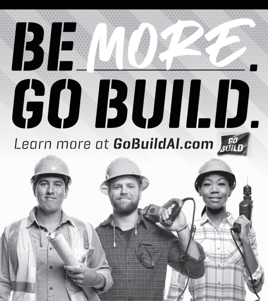 LEARN MORE about high-demand skilled trades and construction positions. Begin your construction career with Go Build Alabama. Apply today at GoBuildAL.com.