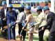 (RIGHT) President Charlie Miller makes a presentation to Richard Knight, Membership Chairman
