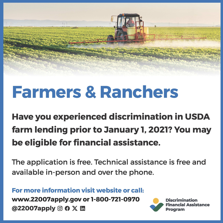 Are you a farmer, rancher, or forest landowner who has faced discrimination in USDA farm lending prior to January 2021? You may be eligible for financial assistance through the U.S. Department of Agriculture’s (USDA) Discrimination Financial Assistance Program (DFAP).