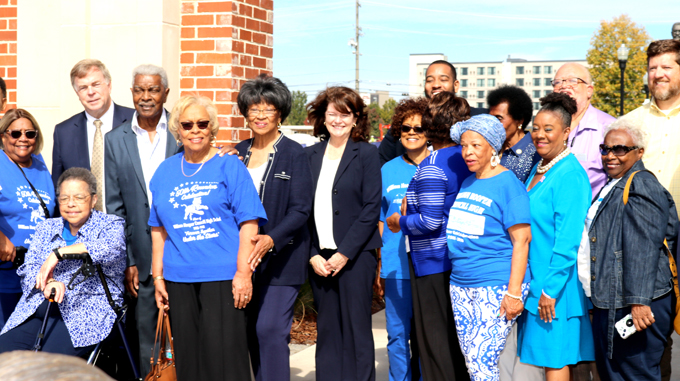 GATHERING OF LEGACY: Alumni from Councill High School, alongside distinguished guests, come together to commemorate the unveiling ceremony at William Hooper Councill Memorial Park. A poignant reunion, seamlessly connecting the past and present through a shared sense of pride and cherished memories. photocredit : Greg Miley, Speakin’ Out News photographer