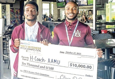 AAMU students Opeyeoluwa Olanipekun and Olasubomi Olawepo competed against 42 other teams and took home first place and a $10,000 check in The Alabama Collective HBCU Business Pitch Competition at the Magic City Classic.