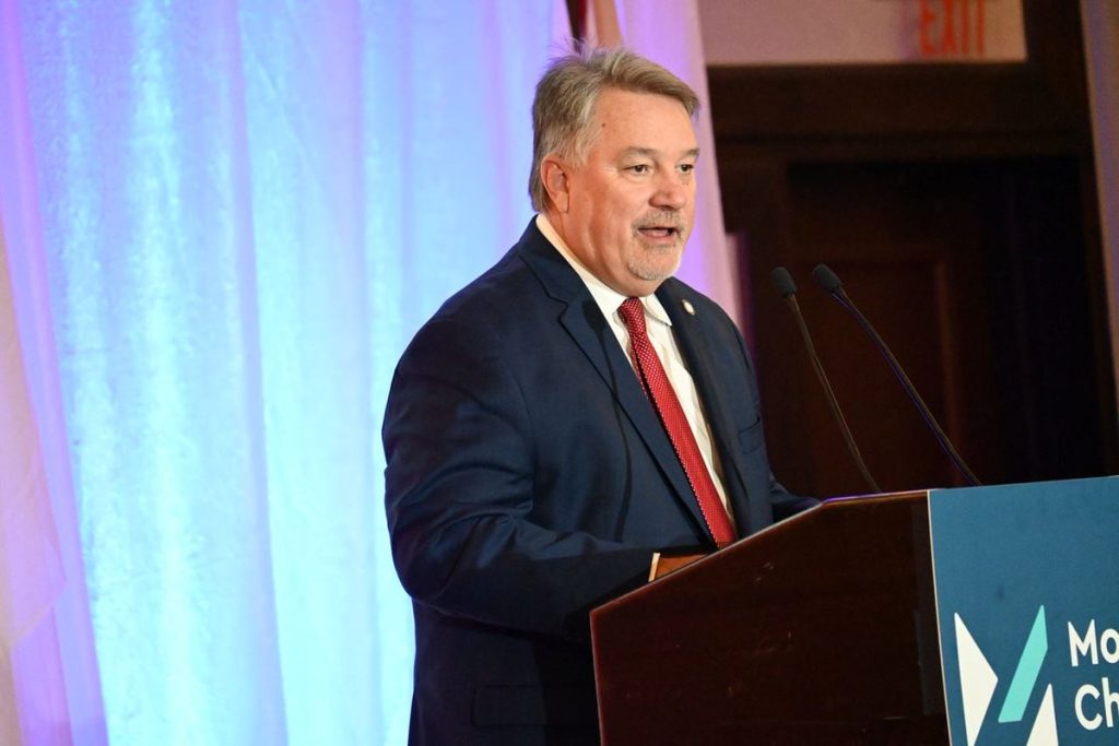 Alabama House Speaker Nathanial Ledbetter, R-Rainville, speaks during a luncheon hosted by the Mobile Chamber on Thursday, Nov. 9, 2023, at the Renaissance Mobile Riverview Plaza Hotel in downtown Mobile, Ala.