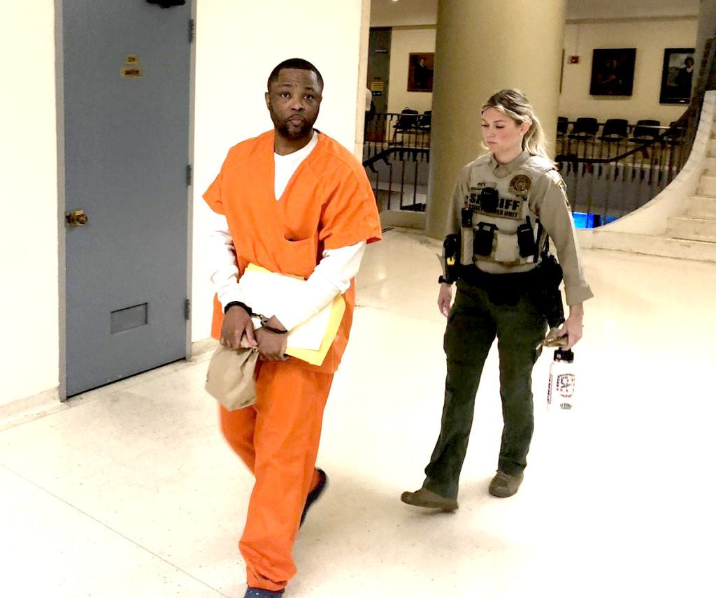 LaJeromeny Brown leaves court on Oct. 25, 2023, during his capital murder trial related to the shooting death of Huntsville police officer Billy Clardy III. Paul Gattis
