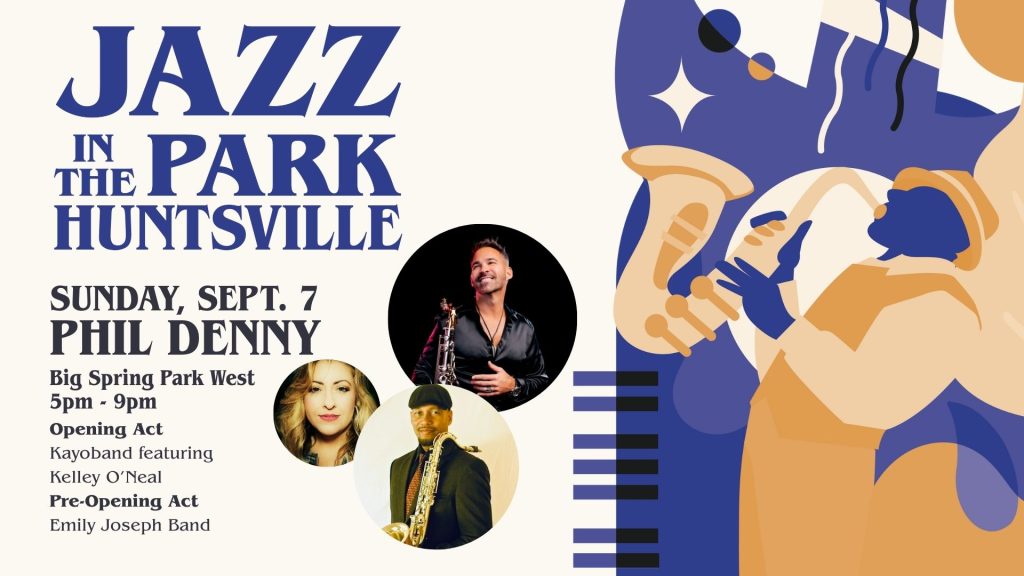 HUNTSVILLE, Ala. — Smooth sounds and soulful rhythms will fill the air at Big Spring Park West as the Jazz in the Park Huntsville series continues on Sunday, Sept. 7, featuring a headline performance by acclaimed saxophonist Phil Denny.